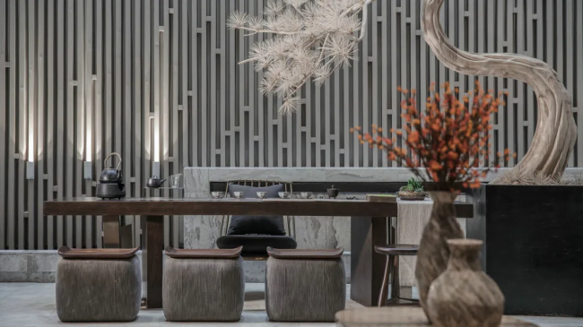 在新中式建筑设计中,对现代设计手法恰到好处的拿捏,将中国传统建筑元素融入现代建筑,既保留了传统经典,又体现了时代的面貌。打破中式传统风格中沉重、等级划分等弊端,使整个建筑都活泼了起来。