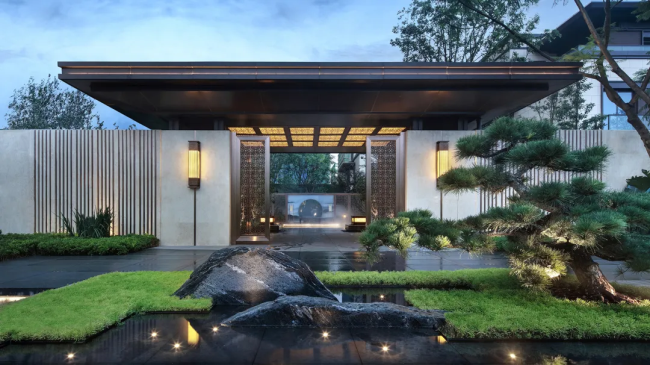 在庭院的处理中,也吸纳了更多现代生活流线的创新之笔,如外庭院、下沉庭院、水景、内游廊等,让中式建筑以一种更自然、更现代、更具生命力的品相出现。
