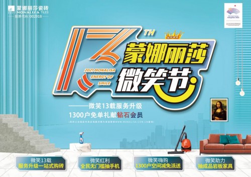 蒙娜丽莎微笑节自开展以来,无数参与活动的消费者都以非常实惠的价格收获了优质健康的家装瓷砖,也收获了美好家居生活的幸福微笑。我们相信,第十三届蒙娜丽莎微笑节一定会让相遇更美好,蒙娜丽莎将为广大消费者带来更多美好体验和产品优惠,为每一个信赖蒙娜丽莎瓷砖的家庭带来幸福的微笑!