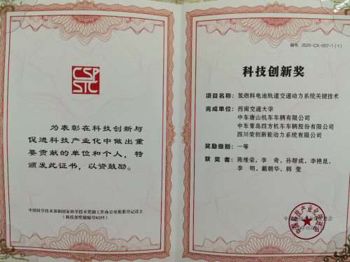 据了解,荣创新能研发团队由西南交通大学电气工程学院陈维荣团队以及国内最早从事大功率燃料电池动力系统应用研究团队国家轨道交通电气化与自动化工程中心新能源技术与应用团队构成,团队成员作为发明人已获授权60余项发明专利,若干项实用新型专利。是世界首列氢能源混合动力有轨电车,中国首辆燃料电池调车机车研发团队,囊括了90%以上大功率燃料电池相关专利、技术。截至目前,荣创新技术团队保持国内燃料电池功率最大记录。