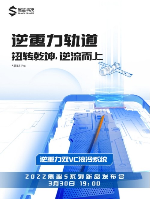 距离3月30日全新黑鲨5系列发布会召开还有两天时间,今日黑鲨科技官方微博再度放出关键信息,全新黑鲨5 系列将配备高通骁龙8 SoC与全新设计的逆重力双VC液冷散热系统。