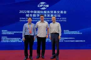 沈寓实董事长(中)和论坛主办方出席服贸会