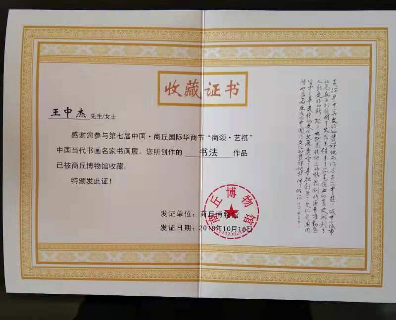 王中杰,字集华,1963年生人,祖籍登封。国家一级美术师,中国书画艺术指导委员会副秘书长,中国传统文化书画院副院长,郑州大学书画研究院客座教授,中国书画原创鉴定中心副秘书长,中数传播集团艺术总监,中国书画名家联展组委会公益助学委员会副主席,《中国艺术典藏》杂志社书法艺术总监,河南省文博院书法研究室主任。 自幼喜欢书法、十余岁开始,经名师指导,楷书初学赵孟頫,临习柳公权,研读欧阳询等大家,深受文征明书风影响,使自己的书法逐渐形成了圆润挺拔、秀美、体势生动、韵味十足的艺术风格。 行书遍临二王诸帖,文征明以及李邕的《法华寺碑》,黄庭坚《松风阁》、《苦笋赋》,塑造了沉稳而不失流动,飘逸而不失严谨,刚健秀颖的风格。 篆刻取法邓石如,后参之赵之谦,又涉猎吴昌硕、黄士陵等大师的篆法,形成了婉转流美、意趣横生、用刀酣畅、顿挫起伏、老辣痛快的风格。经四十余年的艺术钻研,作品多次荣获国内外大奖,被海内外知名人士和机构收藏。尤其小楷平和简静,潇洒自然,在法度之中别开生面,让人身心愉快,享受艺术的乐趣。