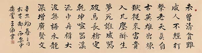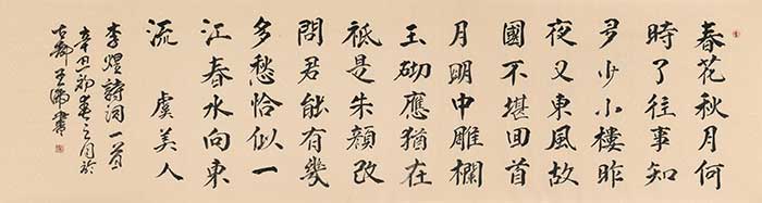 王虎行书取法甚多,汲唐楷之韵,融章草笔意,用笔流畅,潇洒飞动,流动中不失凝重,读来令人赏心悦目,余味无穷。
