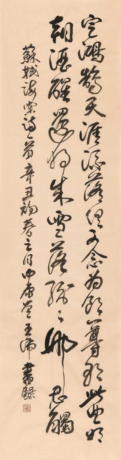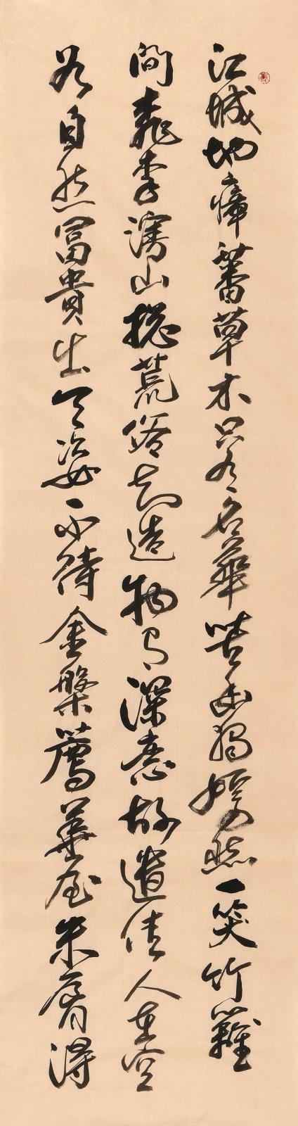 一,他是造诣颇深的书法家,他诸体皆能,尤以草书见长,潇洒自如,风流倜傥,深厚的传统功力。超前的时代意识,使他的书法独具魅力,为收藏所称道。