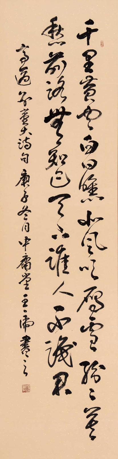 王虎,中庸堂主,1968年生于陕西合阳,他博采众长,诸体皆能,以行草书法见长,其书法潇洒自如,风流倜傥,传统功底深厚,被收藏界视为最有收藏潜力的书法艺术作品。现为:陕西省书法家协会会员、柳公权书画研究会常务理事、天津市书协会员、毛泽东书法研究会理事,河南郑州书画院副院长。(钟日乾)