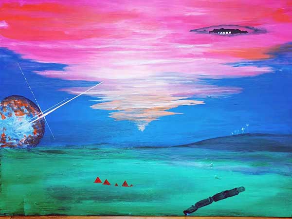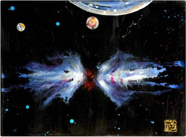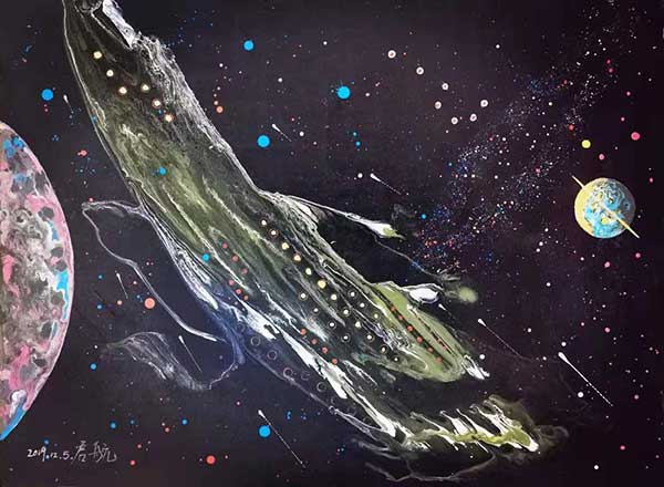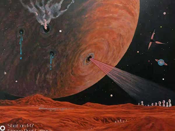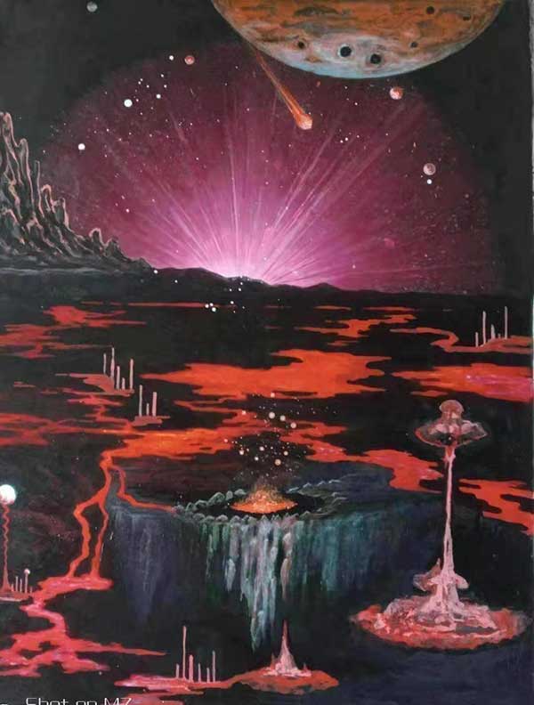 其独创作品《宇宙空间系列》《人文生态系列》《青藏高原风景系列》等,在北京展出和拍卖期间引起轰动,作品首次上拍就一锤售罄。