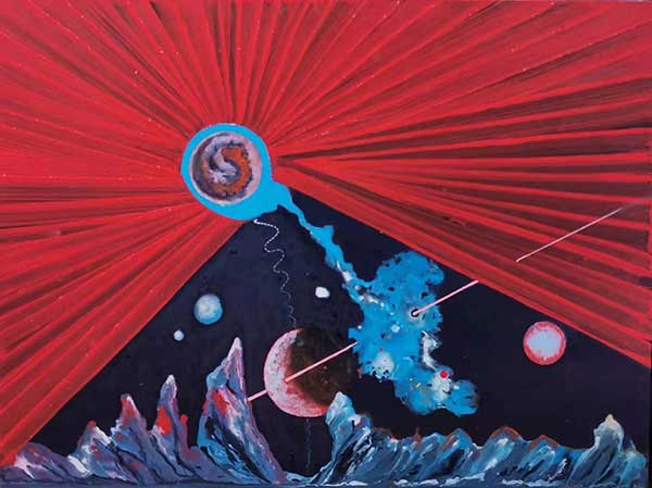 金力的作品突出了人类探索和征服太空的勇气和想象,既反映人类探索太空的成就,又反映人类对未来太空世界的各种思考,他画超越了任何一个绘画大师,超越了任何一篇逻辑严谨的科学论文,特别是在2015年他创作的油画《火星真有水》,这幅作品曾引发不少质疑和争议,有人认为这是没有科学依据的异想天开,没想到2018年7月25日,欧洲空间局MARIS团队宣布:首次确定火星上存在成规模的液态水,这证实了金力画作的预言。也因此引起了艺术与科学界新闻界的高度重视,被四川日报,华西都市报,前锋杂志(成都市委机关办〉等争先报道。